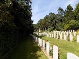 On 25th March 1940 Edwin married Gladys Maria New at St Anne’s Church, Wrenthorpe, but he must have been straight back on duty with the British Expeditionary Force in France. In April 1940 the Kensington Regiment was attached to the 51st (Highland) Division who were cut off and forced to evacuate through St Valery-en-Caux in the hope that the Navy would rescue them. The Navy, however, had been hampered by fog, the loss of some boats and enemy occupation of the cliff tops above them, so had been unable to carry out the evacuation. The Germans surrounded them and the town was under constant bombardment from air and artillery. The French surrendered on the morning of 12th June, followed later that same morning by the British. Unfortunately, it was too late for Edwin, who died the same day and was buried in the St Valery-en-Caux Franco British Cemetery.